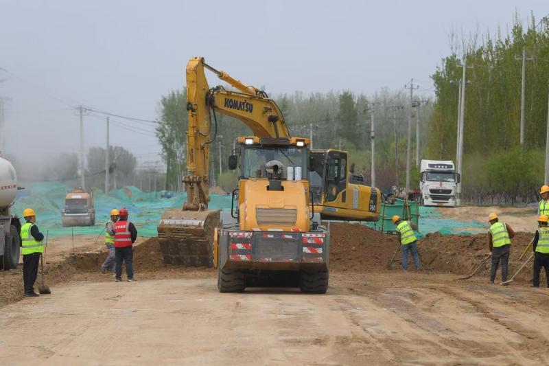 当日下午,北青报记者走进上庄东路北延道路工程施工现场,只见道路下部管线施工已全部完成,施工人员正紧锣密鼓推进路基施工,现场呈现出热火朝天的建设景象。